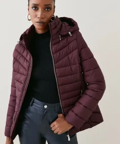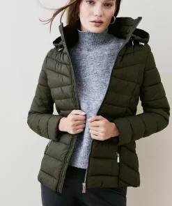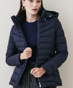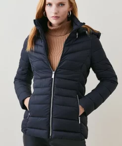 Lightweight and easily foldable, this puffer jacket will become your favourite winter piece. Completed with a detachable hood and slip pockets, it will keep you warm and elegant. Style it with your favourite knitwear and skinny jeans for a casual ensemble.