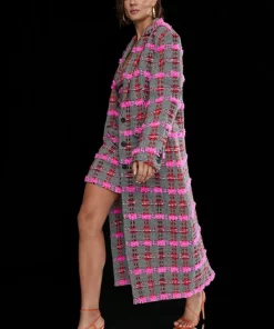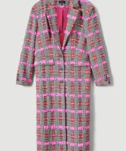 Presenting an off-kilter adaptation of timeless tweed, this tailored coat appears with tactile threading that boasts a dimensional effect. Structured with a boxy, mid-length hem, it nods to tradition with a myriad of classic touches.