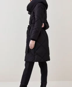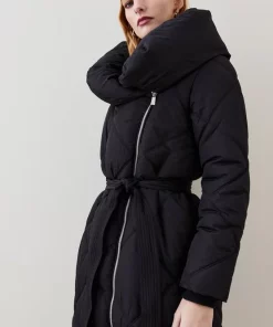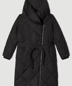 Crafted with a longline silhouette and diamond-quilted design, this puffer coat guarantees enduring comfort in cold weather.