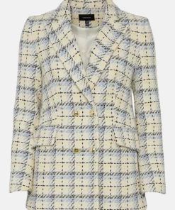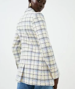 Check all your style boxes for spring. Showing off tweedy pastel-toned checks and a contemporary longline fit, this buttoned blazer makes light work of smart-casual styling. Gleaming gold buttons and flap pockets lend this long-sleeved jacket a put-together feel, whether you layer it over light-wash denim or pair it with our matching flirty mini skirt for drinks with friends.