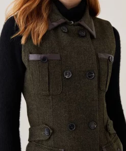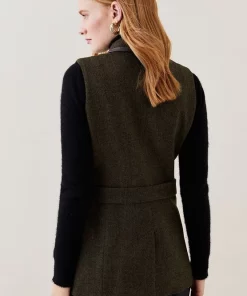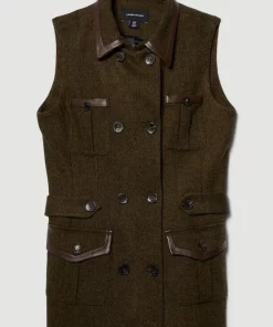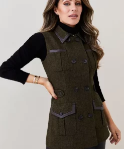 This heritage tweed piece lends timeless appeal to your everyday rotation. This sophisticated sleeveless jacket is crafted from a tweed composition and features signature Karen Millen embossed buttons and classic flap pockets with leather-lined details for a premium finish. Layer over a long-sleeved turtle neck jumper and leather trousers for an elevated everyday look.