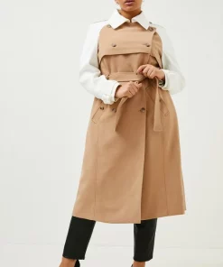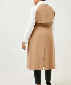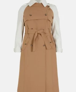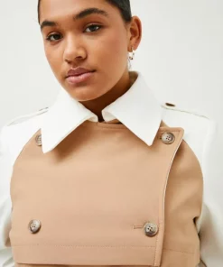 Designed with a double breasted silhouette, this unique colour block trench coat is the ultimate transitional favourite. In a neutral hue across the body, the sleeves and collar stand out with the colour block detail. Belted at the waist, extra details include epaulettes on the shoulder and buttoned pockets.