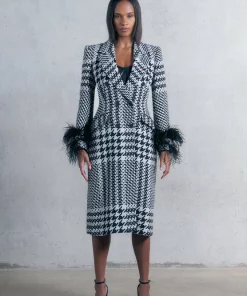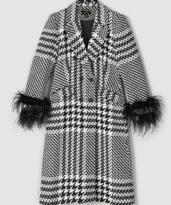 This fitted coat was designed for those who want to break boundaries but still enjoy a classic style. Crafted with a dogtooth check pattern for a traditional touch, the feather-trimmed cuffs of this coat truly bring the design to life.