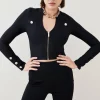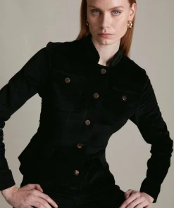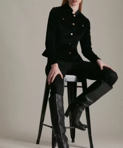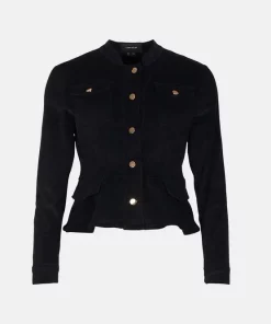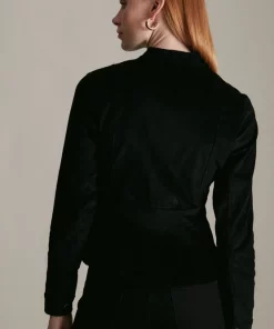 An artistic addition to your outerwear collection, this corduroy jacket boasts a feminine peplum hemline offset by glossy metallic buttons. Its unusual notched neckline adds an artisanal twist to this smart style staple – add knee-high boots and jeans for a modern equestrian vibe.