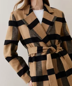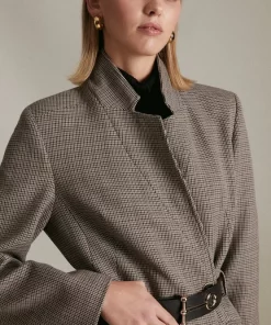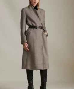 Quintessentially stylish, this tailored coat shows off heritage-style country checks and an equestrian-inspired waist belt. Detailed with a notched neckline and flap pockets, it adds instant refinement to both urban and countryside adventures.
