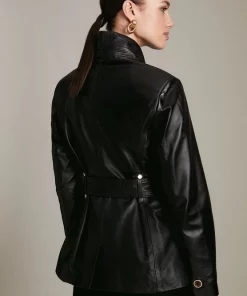 Main: 100% Responsibly Sourced Leather, Lining:100% Polyester. Do not clean this garment. Model wears UK size 8 Petite/ US size 4 Petite. Size 8 Petite Centre back length: 64cm