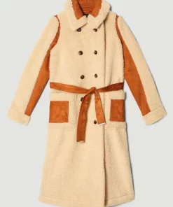 Main: 100% Polyester. Interior lining: 199% Polyester. Belt: 100% Polyester. Dry clean only. Model wears UK 8 US 4. Length approx: 115cm.
