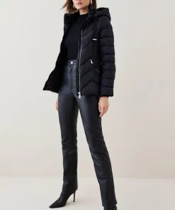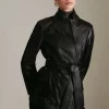 Main: 100% Leather, Lining:100% Polyester. Do not clean this garment. Model wears Uk size 8. Centre back length: 48cm