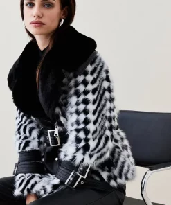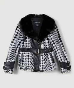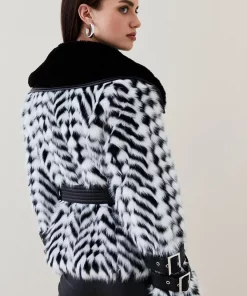 Faux Fur 1: 92% Modacrylic, 8% Acrylic. Faux Fur 2: 100% Polyester. Trim: Polyurethane. Backing: 100% Viscose/Rayon. Lining: 100% Polyester. Model wears UK 8/US 4. Length measurement: 58cm.