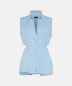 A modern take on the classic tailored waistcoat. Crafted from summer-ready linen for a crisp, natural finish, this clean-lined piece is perfect for warm work days and features edgy side cut-outs, a neat collar and two fabric-covered buttons for a final minimal flourish.