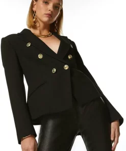 Accented by our signature KM-logo embossed buttons, this military-inspired jacket is a future wardrobe classic. Tailored to fit you impeccably thanks to its nipped-in waist, inseam pockets (for a streamlined finish) and double-breasted closure front, the structured shoulders also give the piece an ultra-flattering shape.