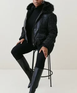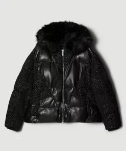 Main: 100% Polyester. Faux Fur: 55% Acrylic, 45% Modacrylic. Do not dry clean. Model wears UK 18/US 16. Length measurement: 63cm.