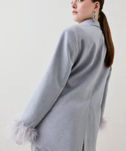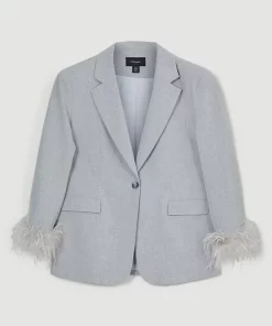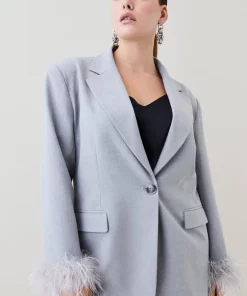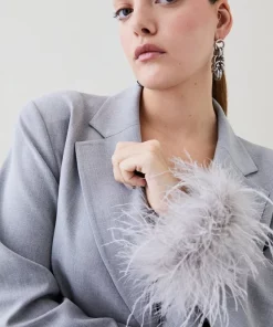 Main: 68% Polyester, 27% Viscose/Rayon, %5 Elastane/Spandex. Lining: %92 Polyester, %8 Elastane/Spandex. Trim: Feathers. Dry clean only, do not iron trim. Model wears UK 18/ US 16. Length measurement: 76cm.