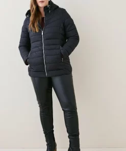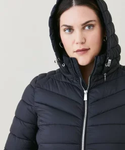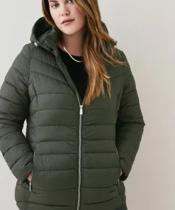 Shell: 52% Pre-consumer Recycled Nylon, 48% Nylon. Binding: 52% Post- consumer Recycled Polyester. Fill: 100% Polyester. Do Not Dry Clean. Model Wears UK 18/ US 16. Length measurement: 72cm.