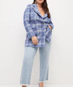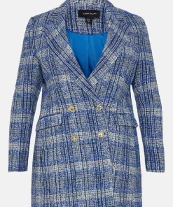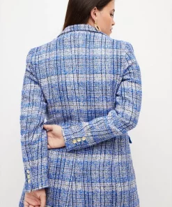 This longline tweed blazer shows off double-breasted buttons, long sleeves and notched lapels for a classic vibe. Detailed with colourful cotton-blend tweed, this smart design looks chic from the commute to cocktail hour. Matching items available.