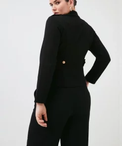 From workdays to weekend drinks, this tailored ponte jersey jacket never fails to look chic. It shows off a sporty gold-tone trims, notched detailing and a neat, form-fitting shape perfect for layering over high-rise trousers.