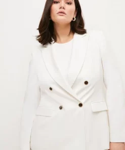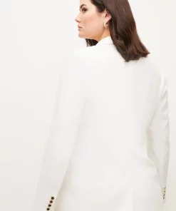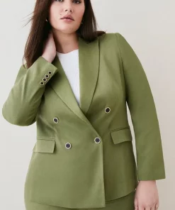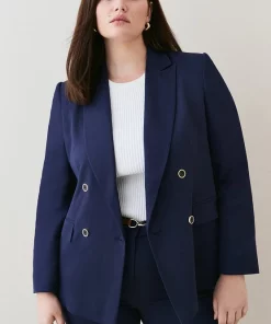 Glossy gold-edged buttons add a luxurious feel to this beautifully cut tailored jacket. The epitome of timeless tailoring, it blends flap pocket detailing with double-breasted closures and buttoned cuffs for a truly put-together look.