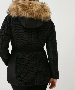 Materials: Faux fur: 66% Acrylic, 28% Modacrylic, 5% Polyester. Shell, Wadding & Lining: 100% Polyester. Wash at 40 with similar colours. Model wears a UK 18/US 14. (Based on a UK 18) Centre back length: approx 76.5cm.