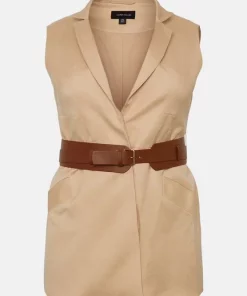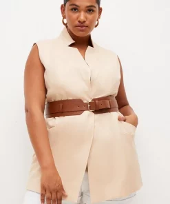 Formulated from our luxe linen-blend fabric โ providing premium comfort, breathability, and ease of movement โ this tailored waistcoat provides effortless polish, making it an expertly crafted addition to any working wardrobe. Single-breasted for a burst of femininity, this sleeveless style is secured with a removable equestrian-style belt to further cinch in the waist and elegantly flatter the form. Completed with notched lapels, it makes a stylish choice for workdays and weekend occasions alike.