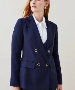The timeless jacket your tailoring collection has been waiting for, this clean-lined design features simple double-breasted buttons, flap pockets and sharply notched lapels. Worn with high-rise trousers, jeans or pencil skirts, this classic piece will soon become a cherished part of your capsule wardrobe.