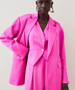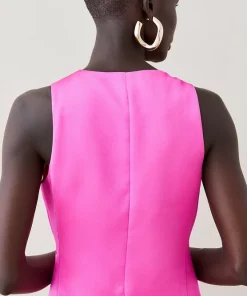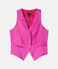 This contemporary waistcoat redefines femininity. Crafted from silky smooth satin, this waistcoat exudes a sleek aesthetic. Accented with polished buttons and inseam pockets for a sophisticated finish.