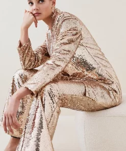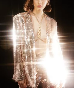 Merging the timeless aplomb of tailoring with a scintillating essence of after-dark drama, this embellished blazer dances to the beat of its own sartorial drum. Showcasing a myriad of classic attributes, pair with the matching trousers for a disco-imbued effect.