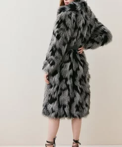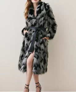 Faux Fur: 73% Modacrylic, 16% Polyester, 11% Acrylic. Lining: 100% Polyester. Remove Belt Before Cleaning. Do Not Dry Clean. Model wears UK 8/US 4. Model height: 5″9. Length measurement: 117cm.