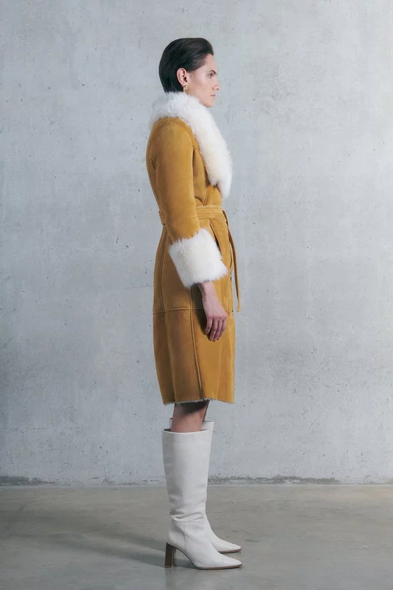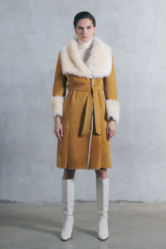 Details And Care – Main 100% Responsibly Sourced Sheepskin Shearling. Machine wash with similar colours. Model wears UK 8/US 4. Model Height 5″10. Centre Back Length: 116cm.
