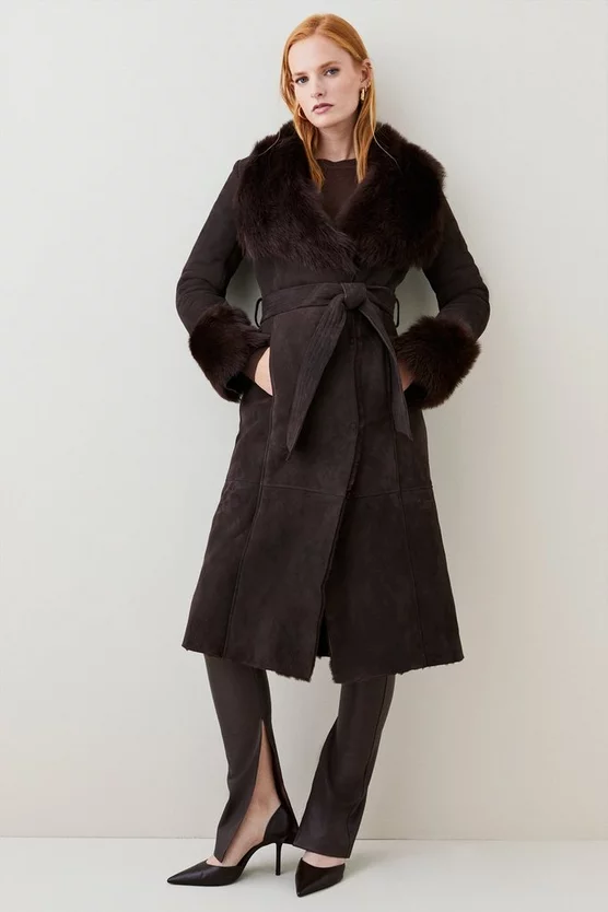 The epitome of opulence, this shearling-trimmed coat will prove to be a wardrobe favourite for years to come. Style with a roll-neck jumper and knee-length leather boots for a sophisticated ensemble.
