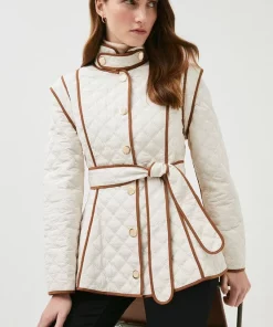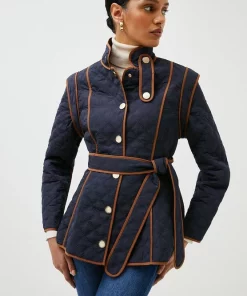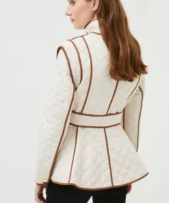 Perfect for countryside pursuits and city adventures alike, our quilted peplum coat strikes a classic note and features contrast tipping and a neatly knotted belt. Keep out the cold with its buttoned collar and cosy long sleeves.