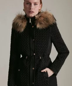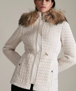 Heritage--style quilting lends this short winter coat an undeniably classic feel. Trimmed with plush faux fur and elegantly cinched in at the waistline, this polished cover-up is the perfect companion for when temperatures plummet.