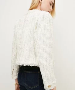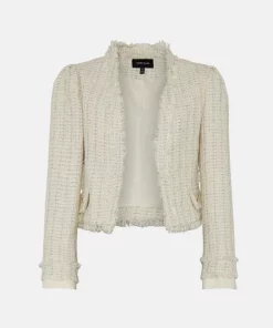 Take timeless tailoring into spring with this cropped boucle style. A jacket with a twist, it shows off an open fit, textured trims and gold button detailing to offset the modern shape. Layered over denim flares, this tweedy cotton-blend design makes a stylish choice for weekend brunches and workdays alike.