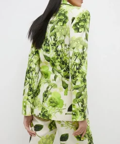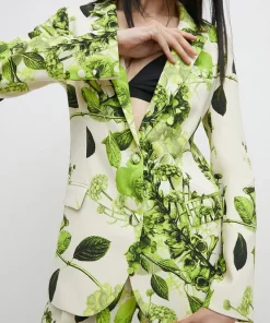 Bringing verdant freshness to your tailoring repertoire, this tailored jacket blooms with a bright green botanical print, inspired by Rui Jiang’s work. Sure to lend a sense of playful luxury to special occasions, the bold motif offsets an otherwise simple silhouette – a single button closure, flap pockets and notched lapels combine for a fuss-free finish. Team it with all-black accessories to let the truly unique print shine.