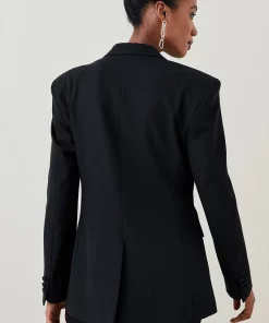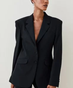 Take your cue from the enduring power dressing trend in this impeccably cut blazer. Featuring strong, defined shoulders, notched lapels and tonal buttons, it exudes confidence and pairs perfectly with a pristine pair of white tailored trousers. Flap pockets and buttons cuffs add extra androgynous appeal.