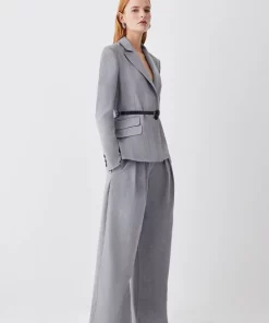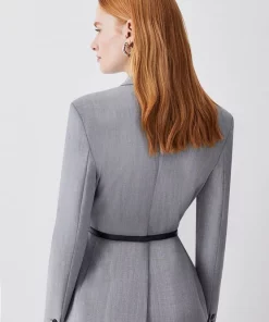 Main: 53% Polyester, 43% Virgin Wool, 4% Elastane. Lining: 100% Polyester. Dry Clean Only. Belt included. Model wears UK size 8/ US size 4. Model height Approx: 5″9. Length Approx: 63cm.