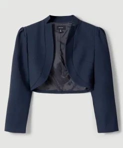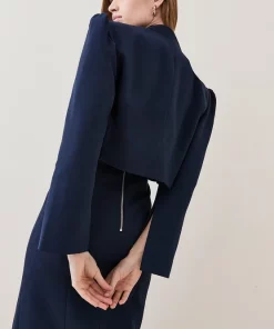 Inspired by organic curves, this tactile cropped jacket shrouds the silhouette with an elegant composition. Crafted from structured crepe for a statuesque effect, it has notches to the collar and dimensional puffed shoulders.