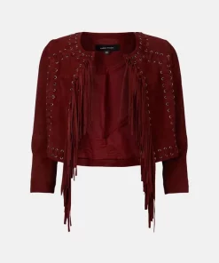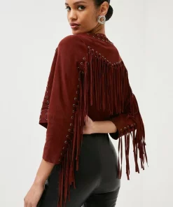 Add modern movement to any look with this luxurious suede jacket. Cropped for a contemporary finish, it shows off swishing tassels and silver-toned eyelets that instantly catch the eye. Wear it with all-black ensembles to try out the of-the-moment Western trend this spring.