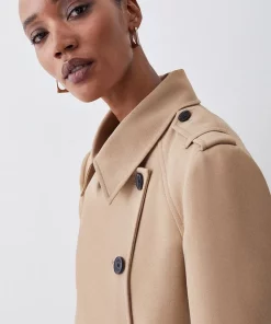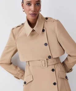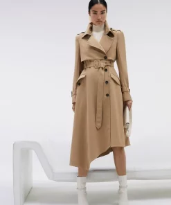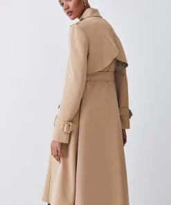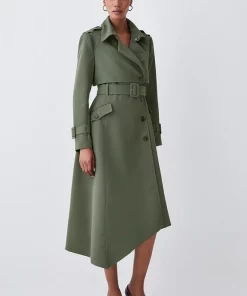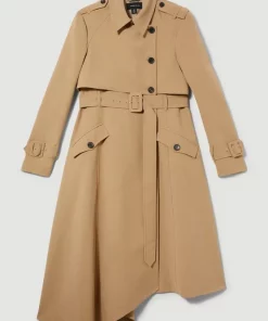 A tailored piece that will pair harmoniously with everything in your collection, this trench coat offers a modern perspective on outerwear. This piece is enhanced with an asymmetric hemline which creates an elegant draped effect, while a cross-over back storm flap creates extra volume. Woven with signature bonded crepe fabric to give structure, this trench coat has a truly premium feel.