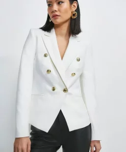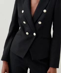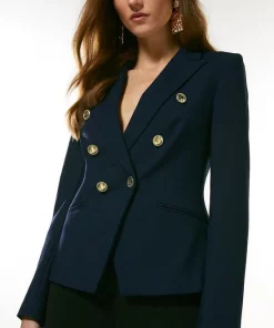 Accented by our signature KM-logo embossed buttons, this military-inspired jacket is a future wardrobe classic. Tailored to fit you impeccably thanks to its nipped-in waist, inseam pockets (for a streamlined finish) and double-breasted closure front, the structured shoulders also give the piece an ultra-flattering shape.