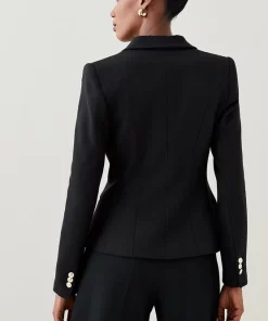Accented by our signature KM-logo embossed buttons, this military-inspired jacket is a future wardrobe classic. Tailored to fit you impeccably thanks to its nipped-in waist, inseam pockets (for a streamlined finish) and double-breasted closure front, the structured shoulders also give the piece an ultra-flattering shape.