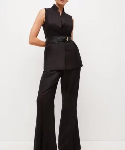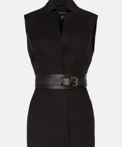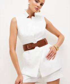 Formulated from our luxe linen-blend fabric โ providing premium comfort, breathability, and ease of movement โ this tailored waistcoat provides effortless polish, making it an expertly crafted addition to any working wardrobe. Single-breasted for a burst of femininity, this sleeveless style is secured with a removable equestrian-style belt to further cinch in the waist and elegantly flatter the form. Completed with notched lapels, it makes a stylish choice for workdays and weekend occasions alike.