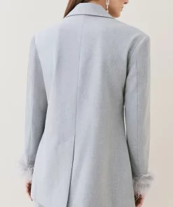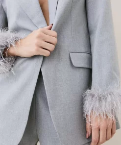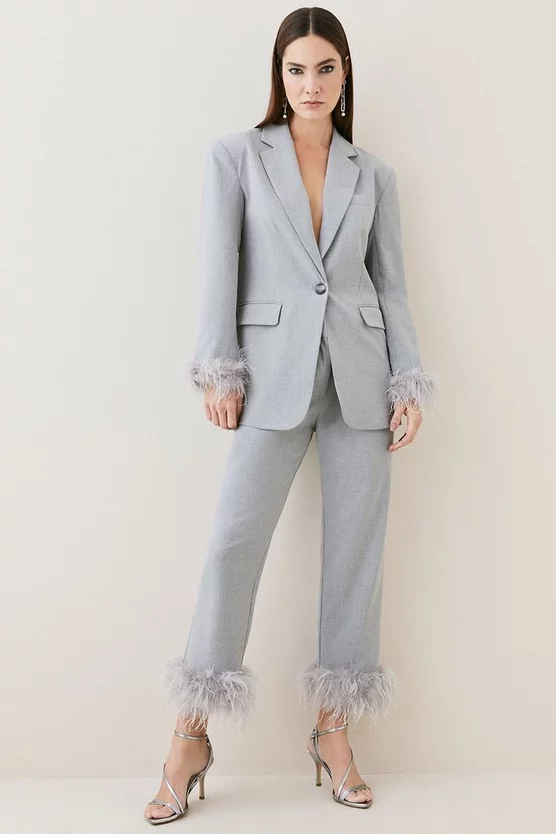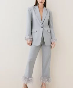 Main: 68% Polyester, 27% Viscose/Rayon, %5 Elastane/Spandex. Lining: %92 Polyester, %8 Elastane/Spandex. Trim: Feathers. Dry clean only, do not iron trim. Model wears UK 8/ US 4. Length measurement: 80cm.