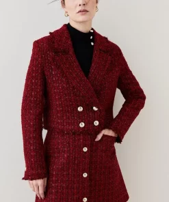 Main: 76% Acrylic, 11% Cotton, 10% Polyester, 3% Metallised fibres. Lining: 100% Polyester. Dry clean only. Model wears UK 8/US 4. Model height: 5″9. Length measurement: 52cm.