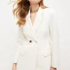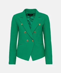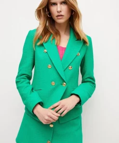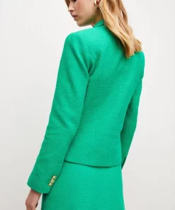 Gleaming gold buttons and textured tweed make this tailored cotton-blend blazer a stylish addition to your cover-up collection. It shows off sharply notched lapels, double-breasted closures and slip pocket detailing to add to its dressed-up allure. Style it with the coordinating mini skirt for a match made in sartorial heaven.
