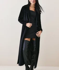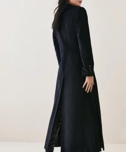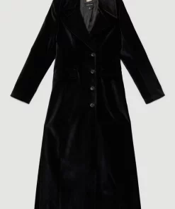 Crafted in sumptuous velvet, this longline coat is the perfect companion to evening soirees. Exuding a vintage charm, this luxurious coat features flap pockets, classic button fastenings and large notched lapels.