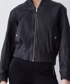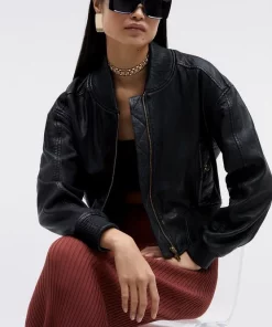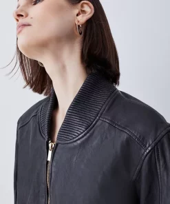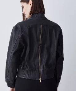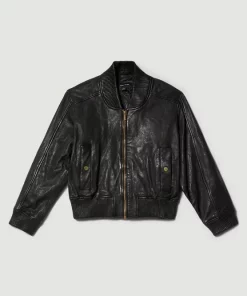 Invest in a timeless classic and embrace an effortlessly cool aesthetic with this leather bomber jacket. Showcasing a washed effect, this jacket adds a considered edge to any ensemble. Side pockets and a front zip closure provide functionality, while a back zip detail allows customisation and adds a contemporary touch.
